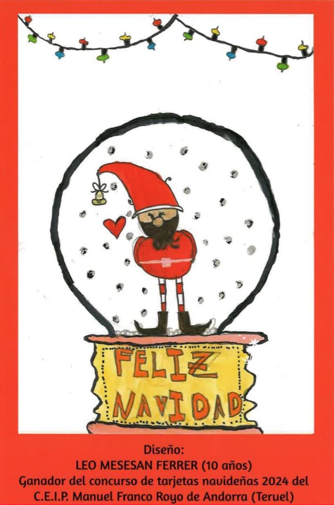 Este año felicitamos la NAVIDAD y el año 2026 con la postal que diseñó Leo Mesesan Ferrer. Hoy ha recibido su premio.